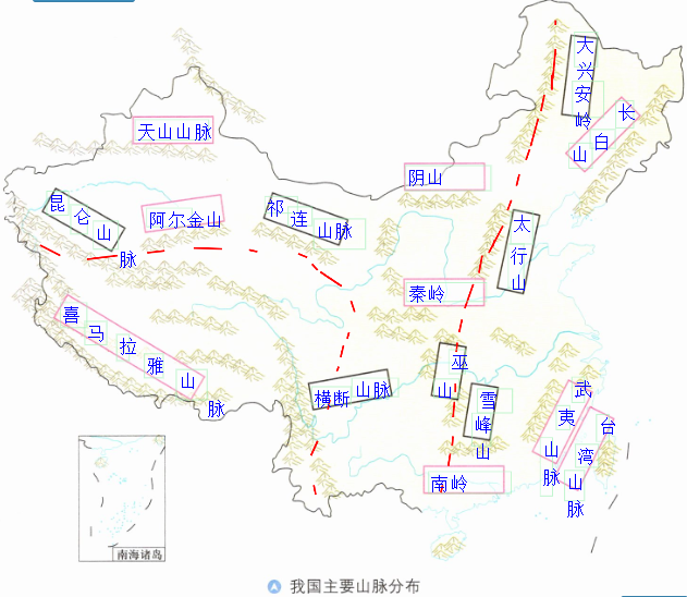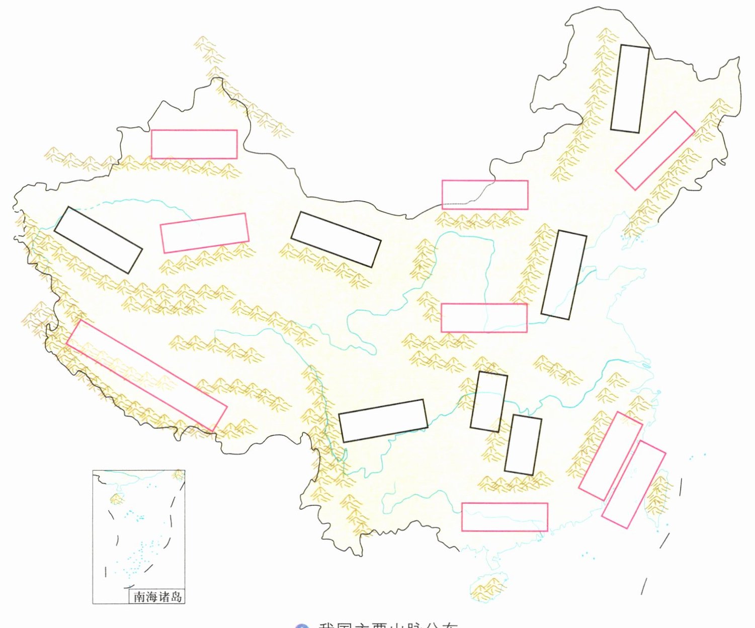 1 我国山脉众多,地势起伏明显。请在“我国主要山脉分布”图中填写以下内容。