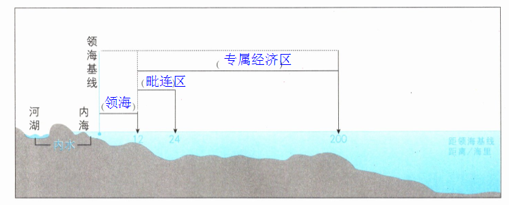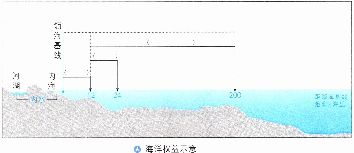 3 我国疆域辽阔,除了960万平方千米陆地面积外,还拥有约300万平方千米的主张管辖海域。参考课本第11页图1-7,填写以下海洋区域名称。
