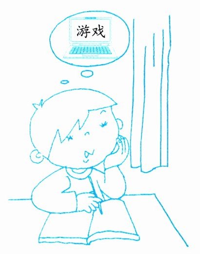 林林做作业时不专心,心里想着游戏,没有集中注意力完成作业。