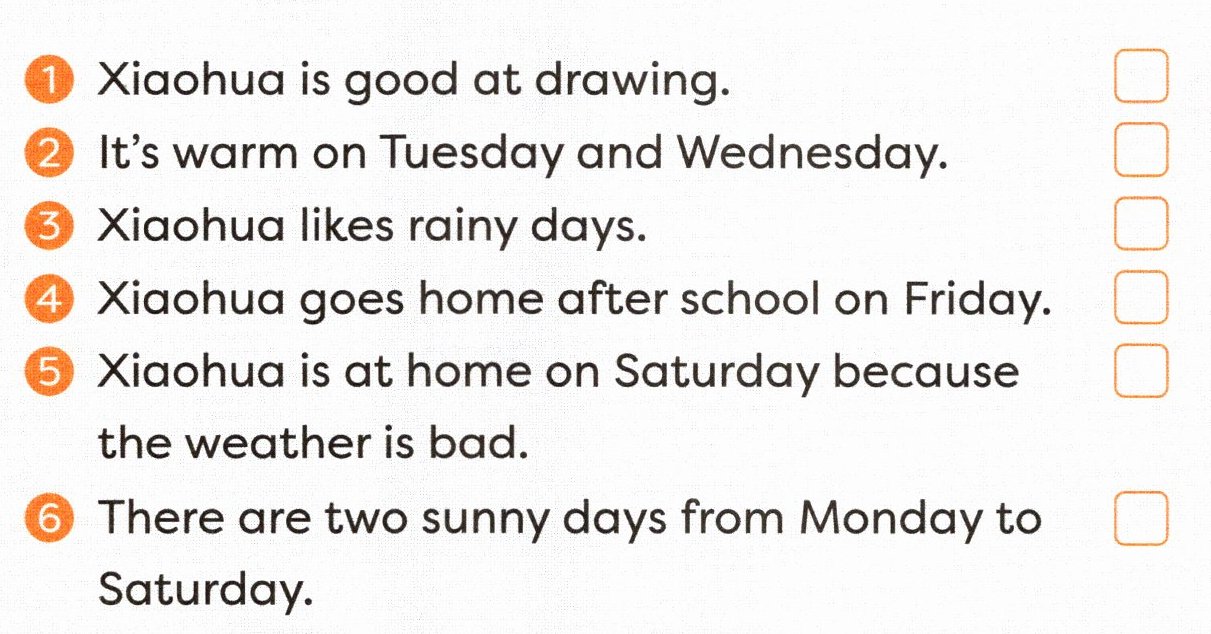 3 Read and tick or cross. 读一读,在正确的句子后打√,在错误的句子后打×。