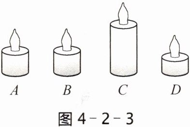 薄玻璃板,白纸,完全相同的两盏蜡烛灯A和B,与A尺寸不同的两盏蜡烛灯C和D(图4-2-3),刻度尺。