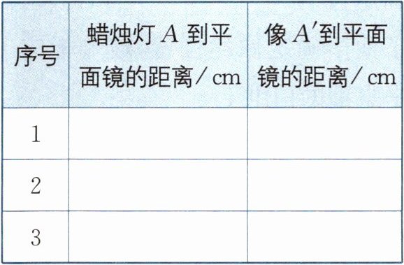 |序号|蜡烛灯A到平面镜的距离/cm|像A'到平面镜的距离/cm|