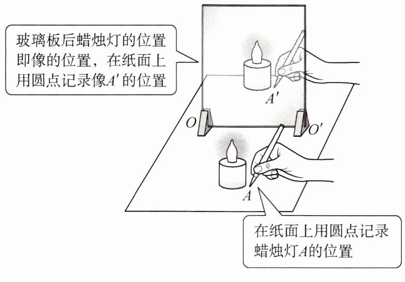 4. 如图4-2-6所示,在白纸上用圆点记录蜡烛灯A和像A'的位置。
