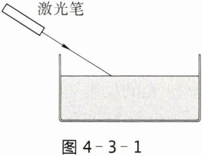 (1)向玻璃容器中倒入一定深度的浓盐水。如图4-3-1所示,用激光笔发出一束光,使其从空气斜射入浓盐水。进入浓盐水的光束与空气中原来的光束传播方向一致吗?
