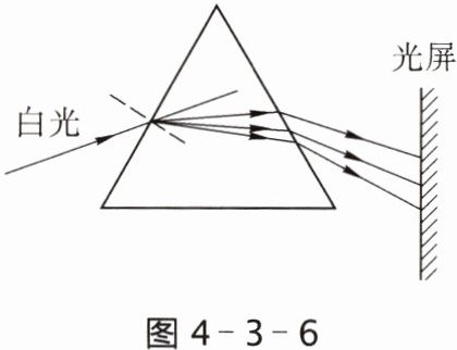 1. 图4-3-6是白光经过三棱镜后的色散光路示意图。发生光的色散的主要原因是:在发生光的折射时,同一透明介质对不同颜色光的____程度是不同的,对____光的____程度最弱,因此在图中,墙壁上呈现的彩色光带的上端为____色。