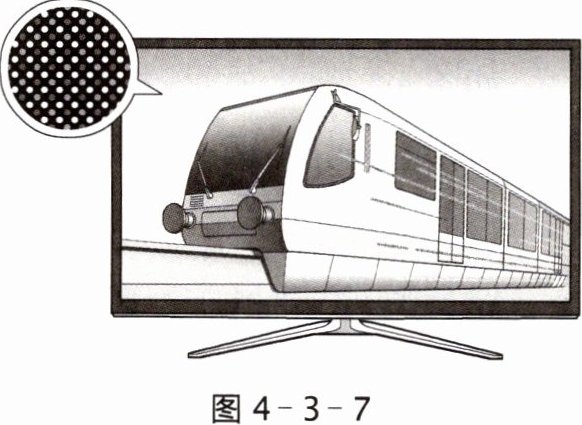 2. 彩色电视机荧光屏上有成千上万个密集的____、____、____三种颜色的小光点(图4-3-7)。