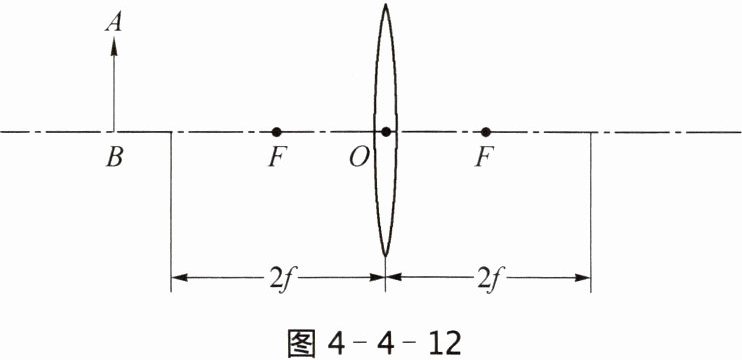 2. 通过作图,画出图4-4-12中物体$ AB 经凸透镜所成的像 A'B' $。