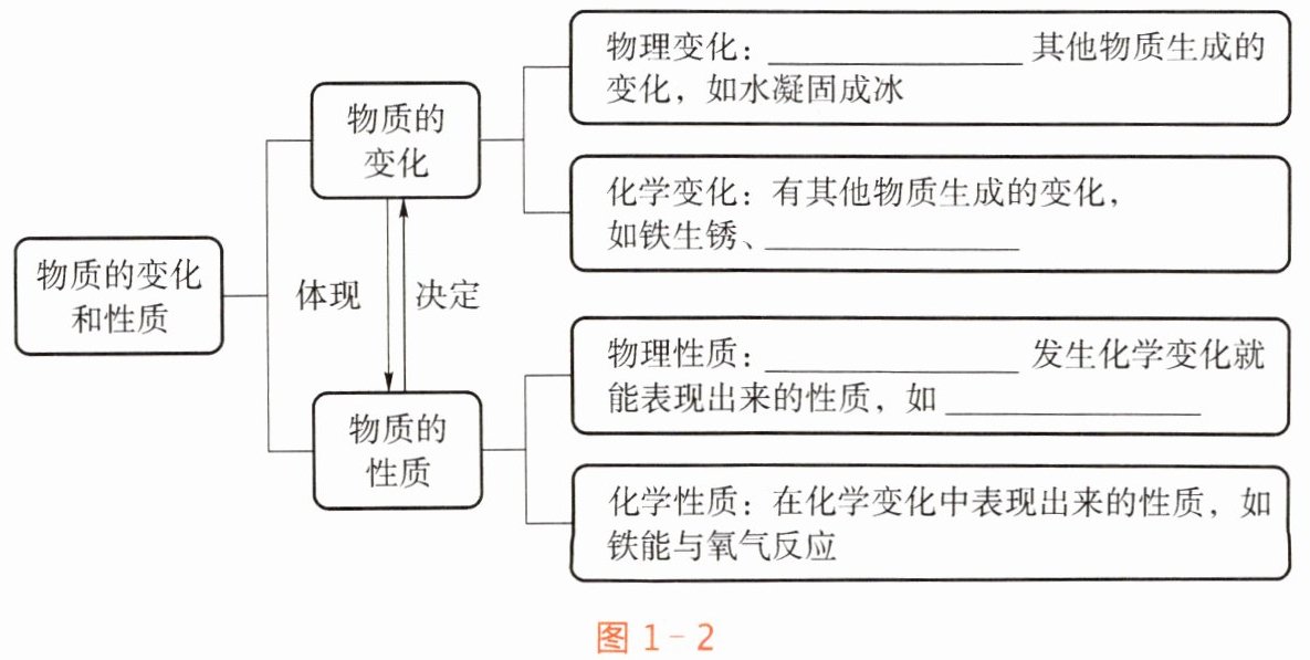 9. 研究物质的变化和性质,可以帮助我们更好地认识和创造物质。请将图1 - 2中的物质的变化与性质补充完整。