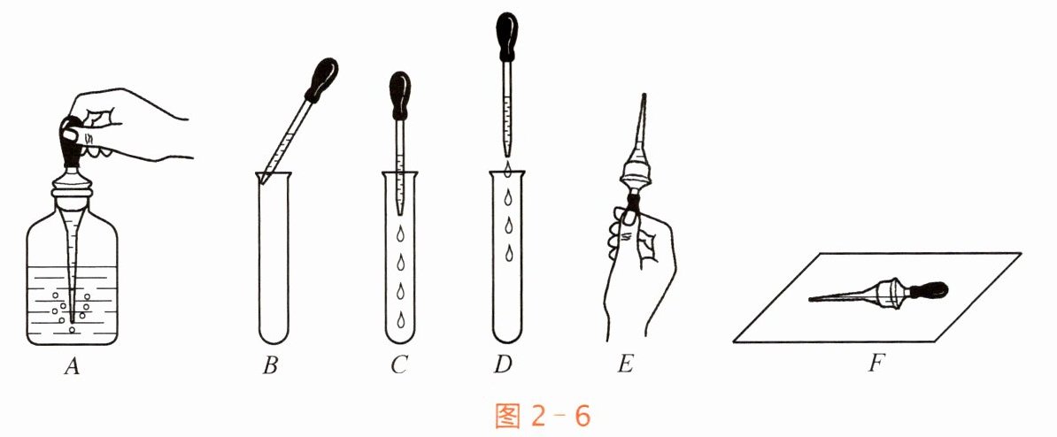 (填图 2 - 2 中仪器的名称),请从存放和取用等角度说明选用该仪器的原因。滴瓶瓶口内侧是磨砂玻璃,胶头滴管可充当瓶塞,也方便临时取用液体