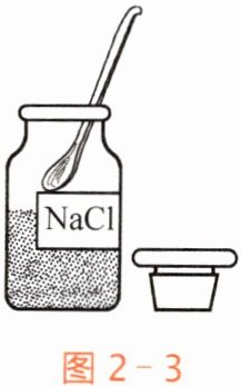 (4) 打开装有氯化钠固体的试剂瓶后,图 2 - 3 中的瓶塞摆放方式是否正确?若不正确,请画出正确的摆放方式,并说明理由。