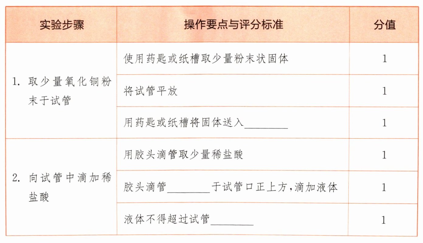 1. 取少量氧化铜粉末于试管