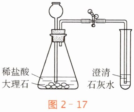 甲、乙、丙三位同学用大理石、稀盐酸和澄清石灰水进行了实验,实验装置如图 2 - 17 所示,并记录现象:澄清石灰水变浑浊。于是,他们认为该气体是二氧化碳。