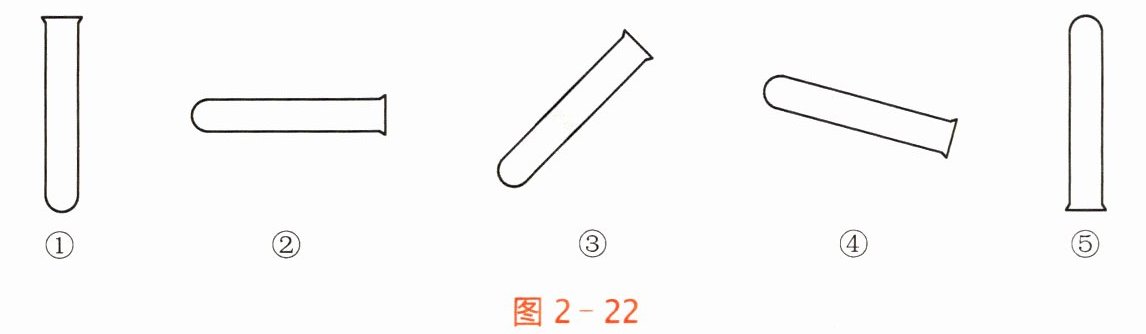 12. 试管是实验室中常见的反应容器,在不同的化学实验中试管口的朝向不同(如图2-22)。回答下列问题。