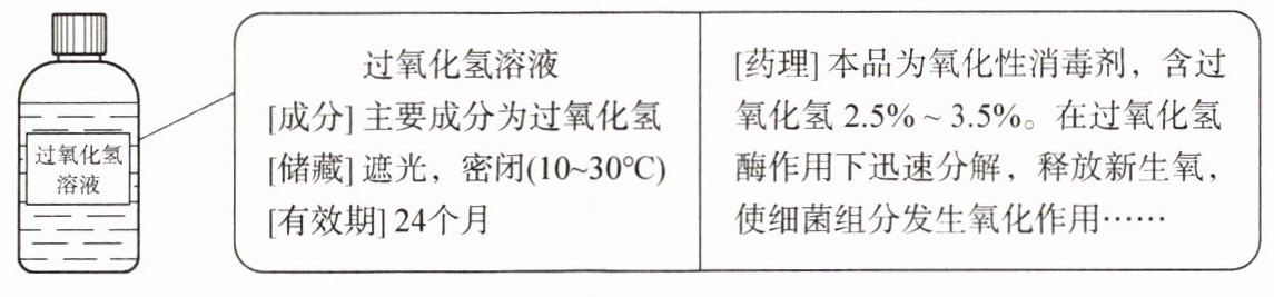 医用过氧化氢溶液可用于伤口消毒和环境消毒。图 3 - 15 是某医用过氧化氢溶液说明书的一部分,回答下列问题。