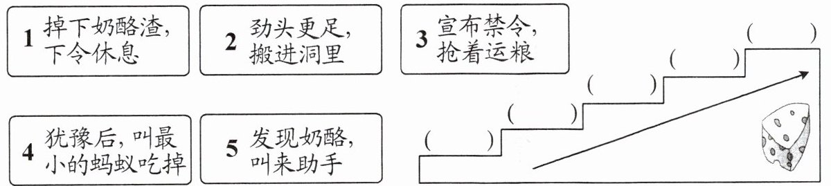 1. 课文围绕一块奶酪讲了哪些事?根据先后顺序填一填。(填序号)