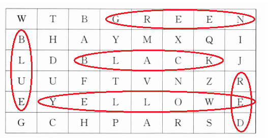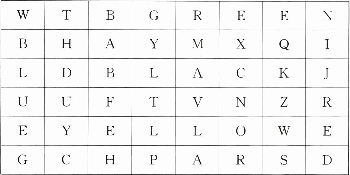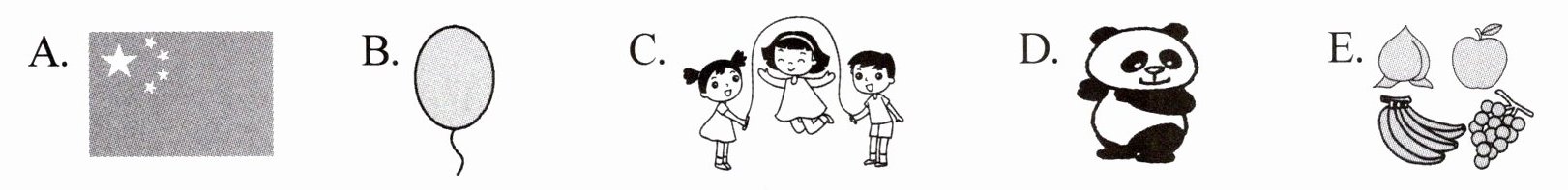 A. blue B. black C. ruler D. orange E. book F. picture G. pink H. balloon
