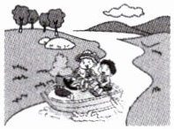 2. 第二幅图是河流上划船的图片,结合首字母“r”,可知是“river”。