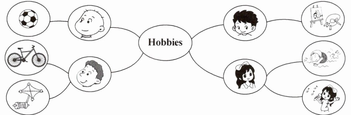 五、请根据以下思维导图,介绍你的朋友们的爱好。(不少于5句话)