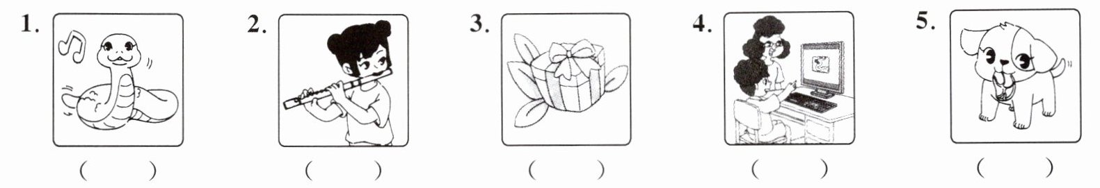 3. 第三幅图是一个礼物盒,B选项“My brother gives me a birthday present.”(我哥哥给了我一份生日礼物。)与礼物相关,所以3对应B。