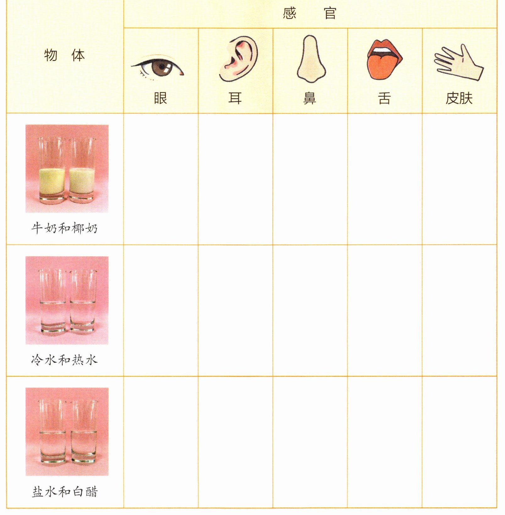 在分辨牛奶、椰奶、冷水、热水、盐水和白醋时,你