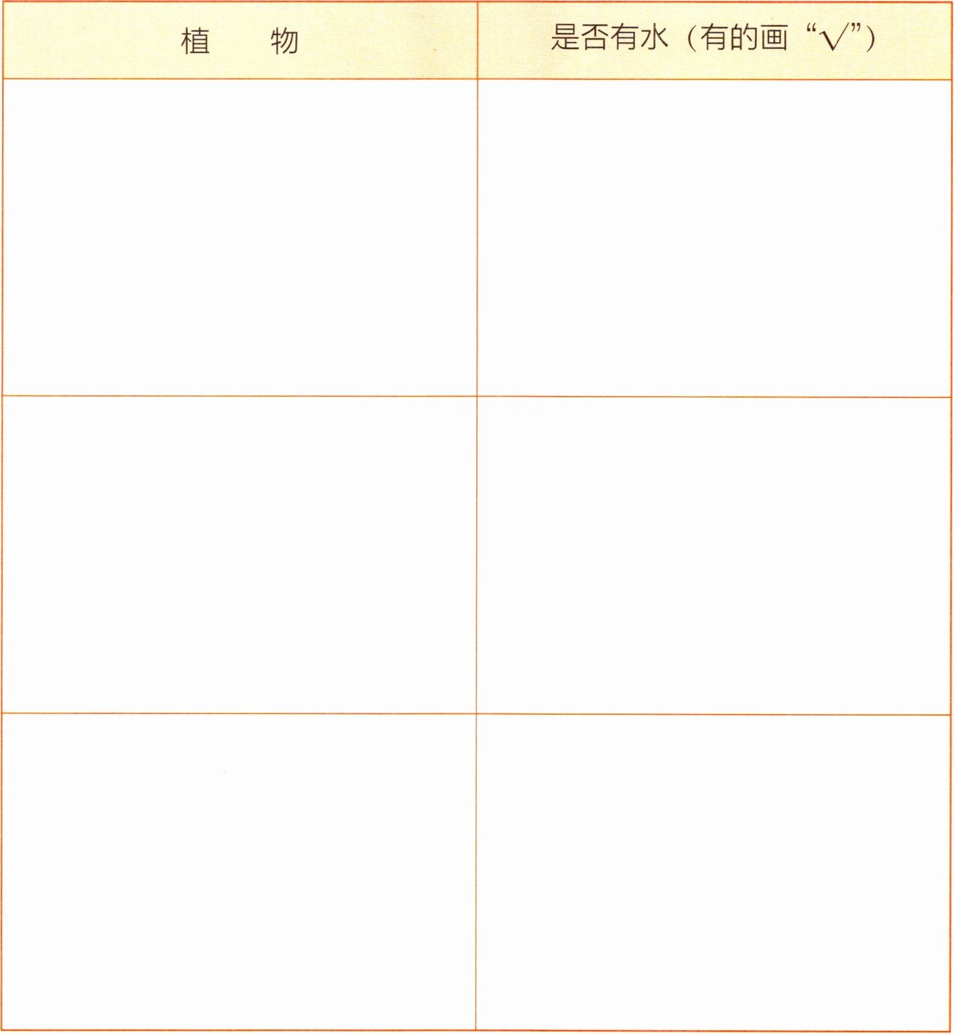 方式 观察 植物 体 内 的 水。在 表格 中 画出 观察 的 植