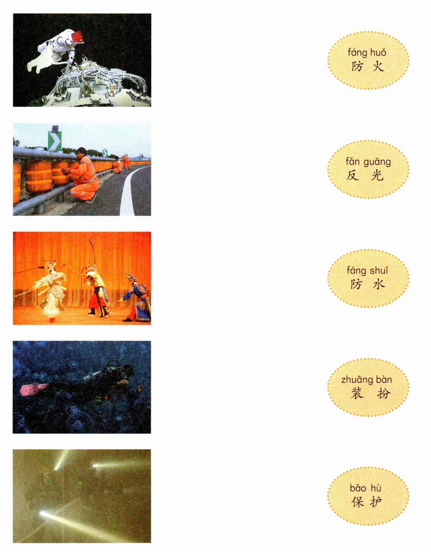 将图片与衣服的主要功能连线。
