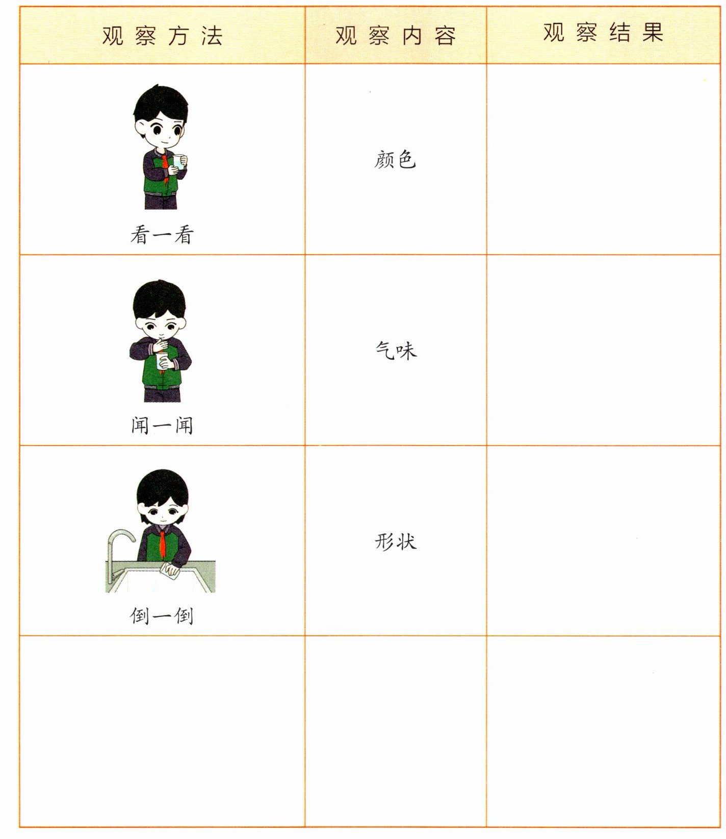 |观察方法|观察内容|观察结果|