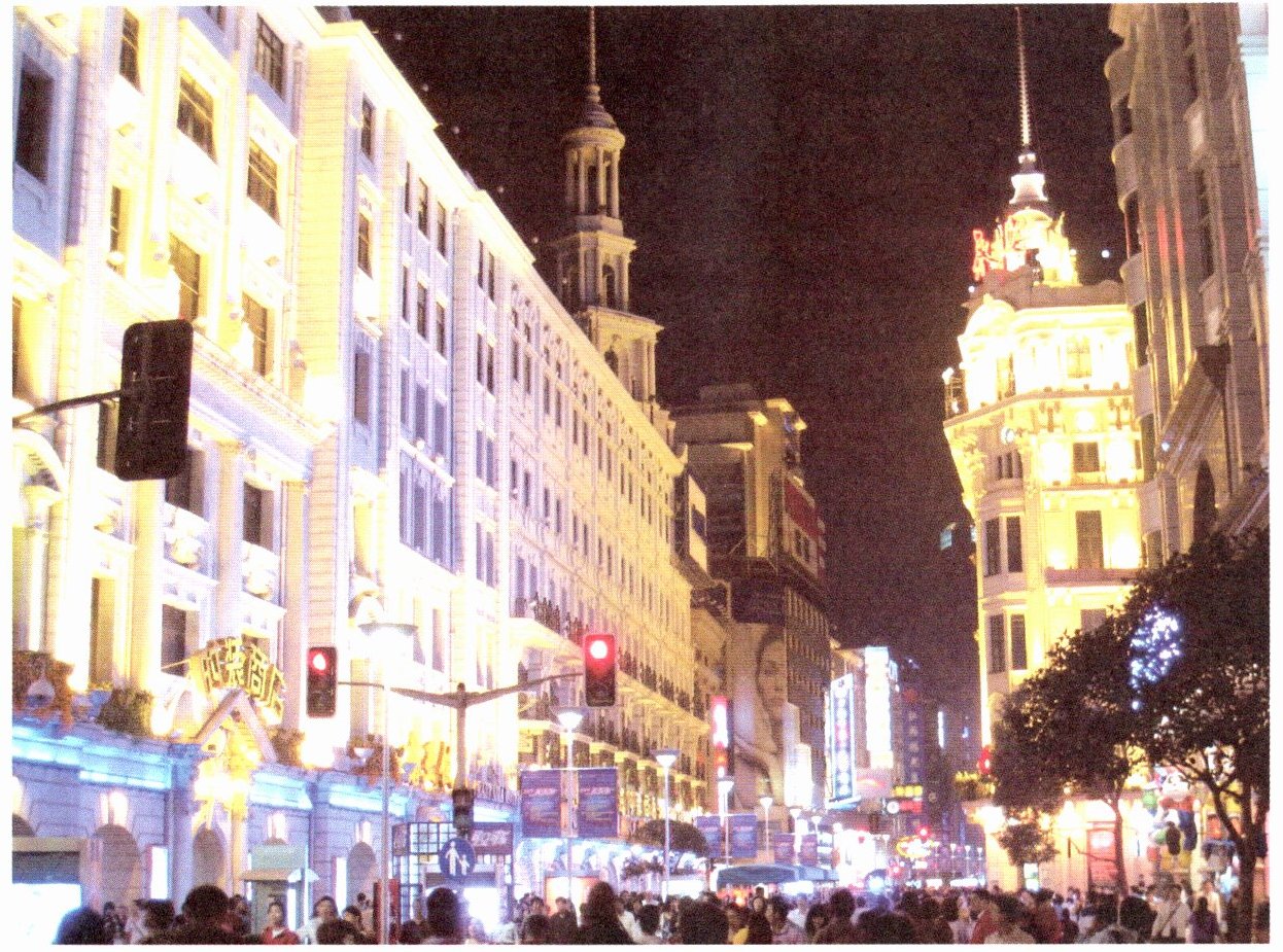 Many people visit Nanjing Road in the evening. The lights are bright and beautiful then.