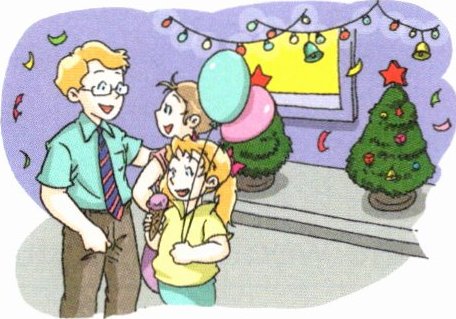Look, here are two photos of Christmas. Can you see the balloons? Look at the stars on the Christmas tree! They're beautiful.