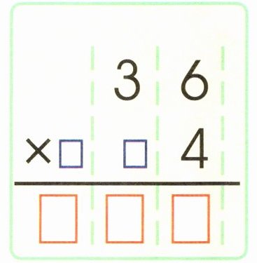 $\begin{array}{r r r}&&&&3&6 \\ ×&&&&&4 \\ \hline &&1&4&4 \end{array}$
