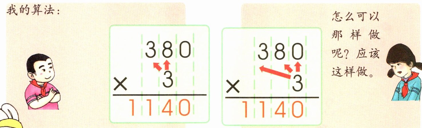 小胖做得对。理由:计算3×380时,可以先算38×3=114,再在积的末尾添上1个0,结果是1140。