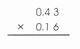 两个因数中一共有$2 + 2 = 4$位小数,则$0.43×0.16 = 0.0688$。
