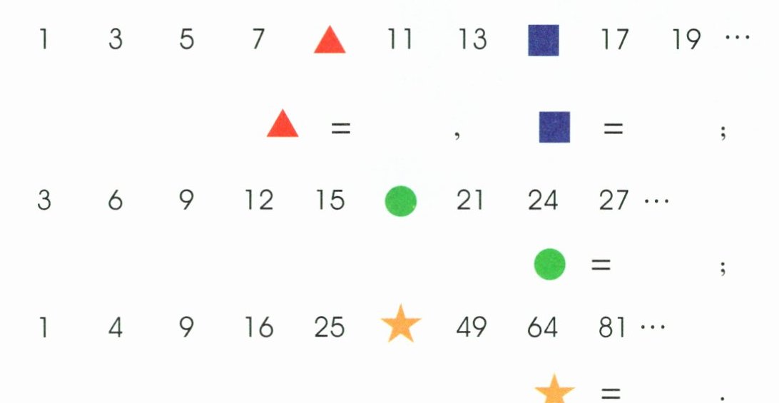对于第一组数列 1,3,5,7,▲,11,13,■,17,19,…