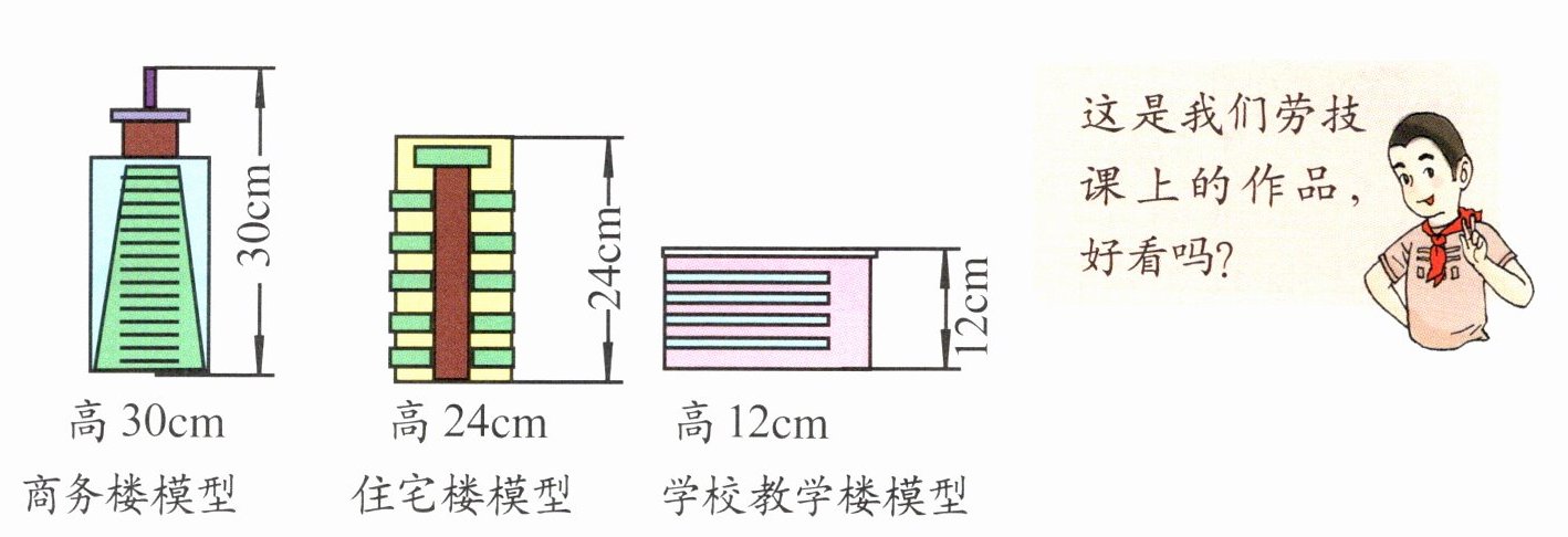 住宅楼模型的高度是教学楼模型高度的几倍?
