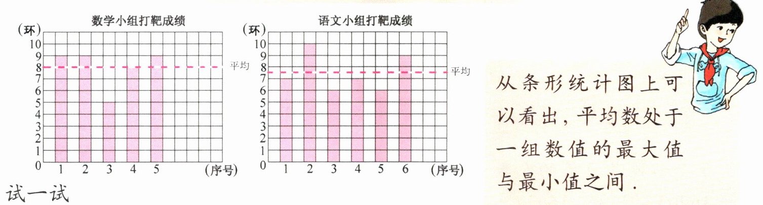 因为$8>7.5$,所以数学小组比语文小组打靶的成绩好。