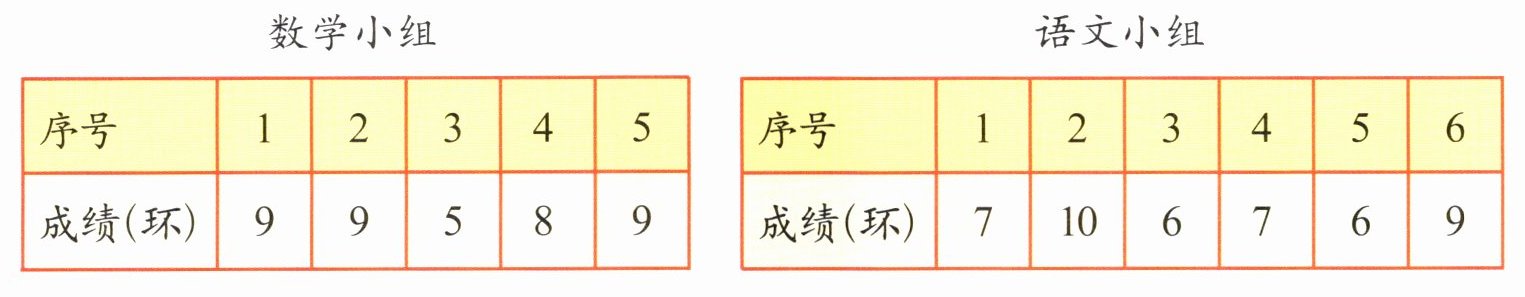 例 五年级语文小组有6名老师,数学小组有5名老师,在学校组织的打靶比赛中成绩如下: