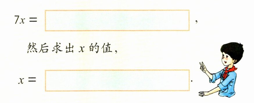 分析:要求$x$的值,首先要求出$7x$的值,$7x= \boxed{}$,然后求出$x$的值,$x= \boxed{}$.