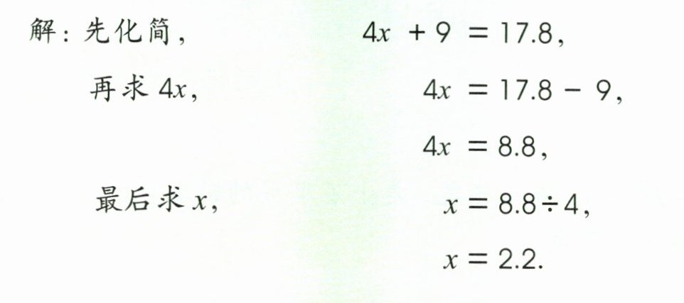 例8 解方程:$7x + 9 - 3x= 17.8$.