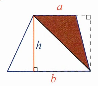 梯形面积等于这两个三角形面积之和,即$\frac{1}{2}ah+\frac{1}{2}bh$,提取公因式$\frac{1}{2}h$可得$\frac{1}{2}(a + b)h$。