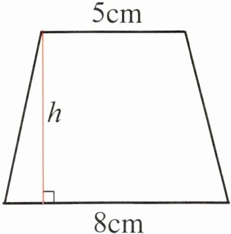 2 如图,已知一个梯形的面积为$52cm^2$,上底和下底的长分别为5cm和8cm,求这个梯形的高.