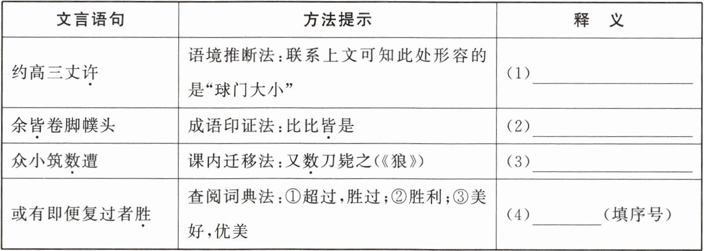 10. 请你根据表格中的方法提示,解释下列句子中加点的词。(4分)