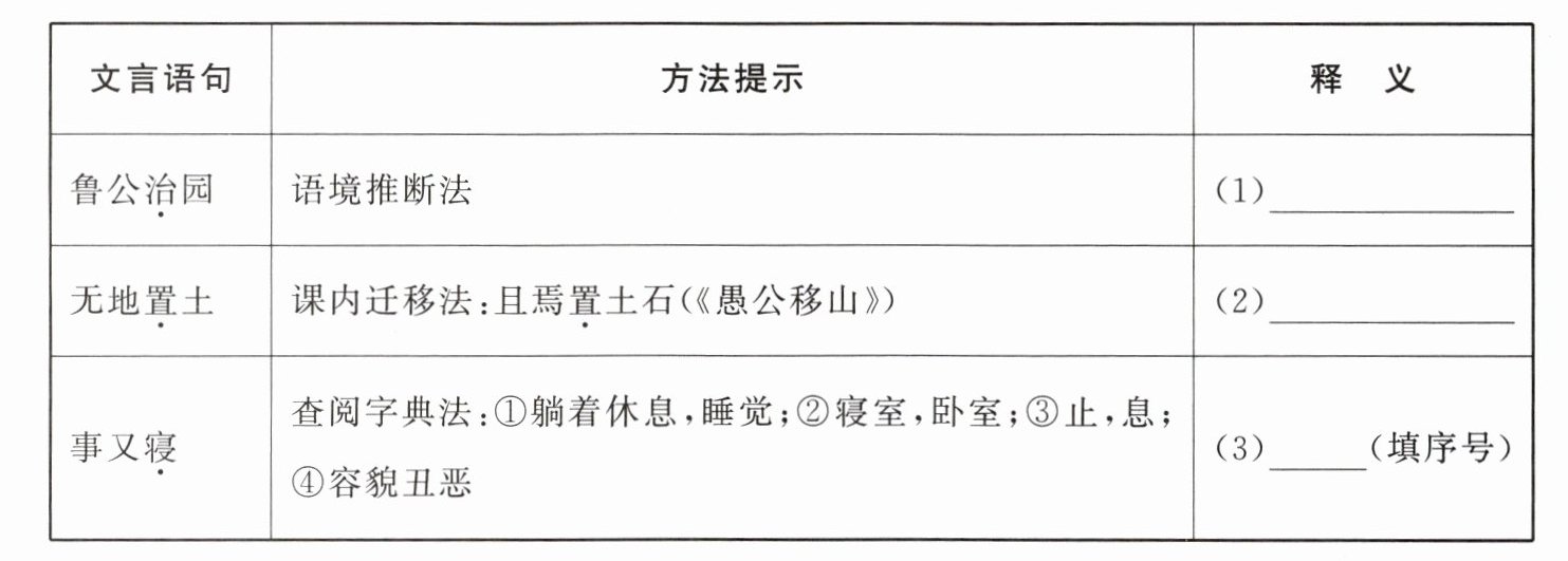 8. 根据表格中的方法提示,解释句子中加点的词。(3 分)