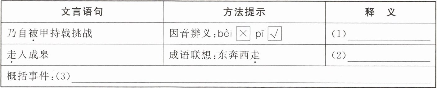 6.(1)同“披”,穿着 (2)跑 (3)楚汉久相持未决,项羽向刘邦发起挑战。