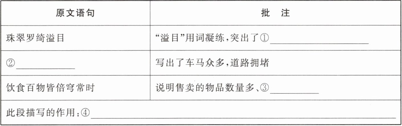 9. 【批注作用】阅读《观潮》最后一段,将下面表格填写完整。(4分)