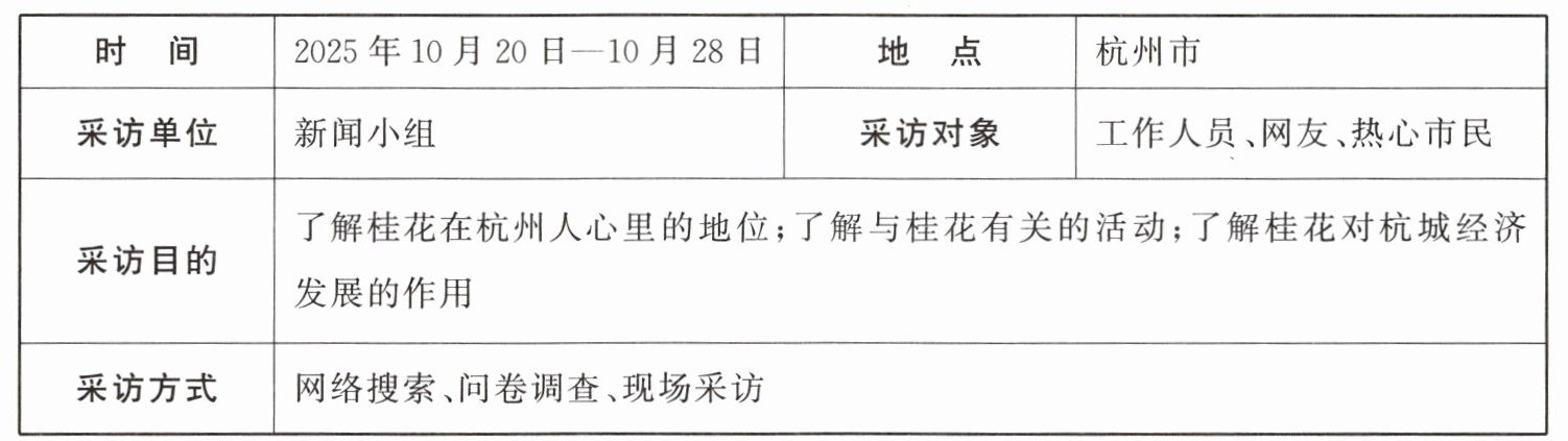 在“了解桂花在杭州人心里的地位”现场采访中,同学们采访了工作人员、街头市民等,并记录了以下素材——