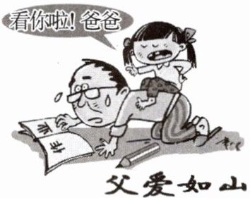 不好。因为这幅漫画描绘的是女儿骑在父亲背上,指使父亲替她做作业的情景。父亲包办女儿的作业,其实是溺爱,并不能体现“父爱”。
