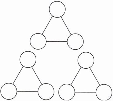 11. 下图是三个三角形,每个三角形的顶点处都有一个“○”,在每个“○”中填入一个数,满足这三个三角形的3个顶点处的“○”中的数的和都等于2。