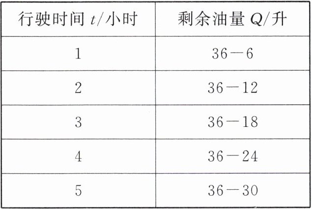 | 行驶时间$t$/小时 | 剩余油量$Q$/升 |