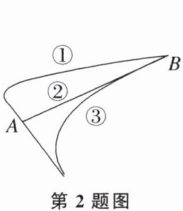 2. 小华认为从A点到B点的三条路线中,②是路程最短的,他做这个判断所依据的是( )