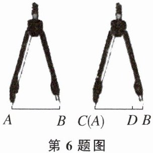 6. 有不在同一直线上的两条线段AB和CD,李明很难判断出它们的长短,因此他借助于圆规,操作如图所示,由此可得出AB ______ CD。(填“>”“<”或“=”)